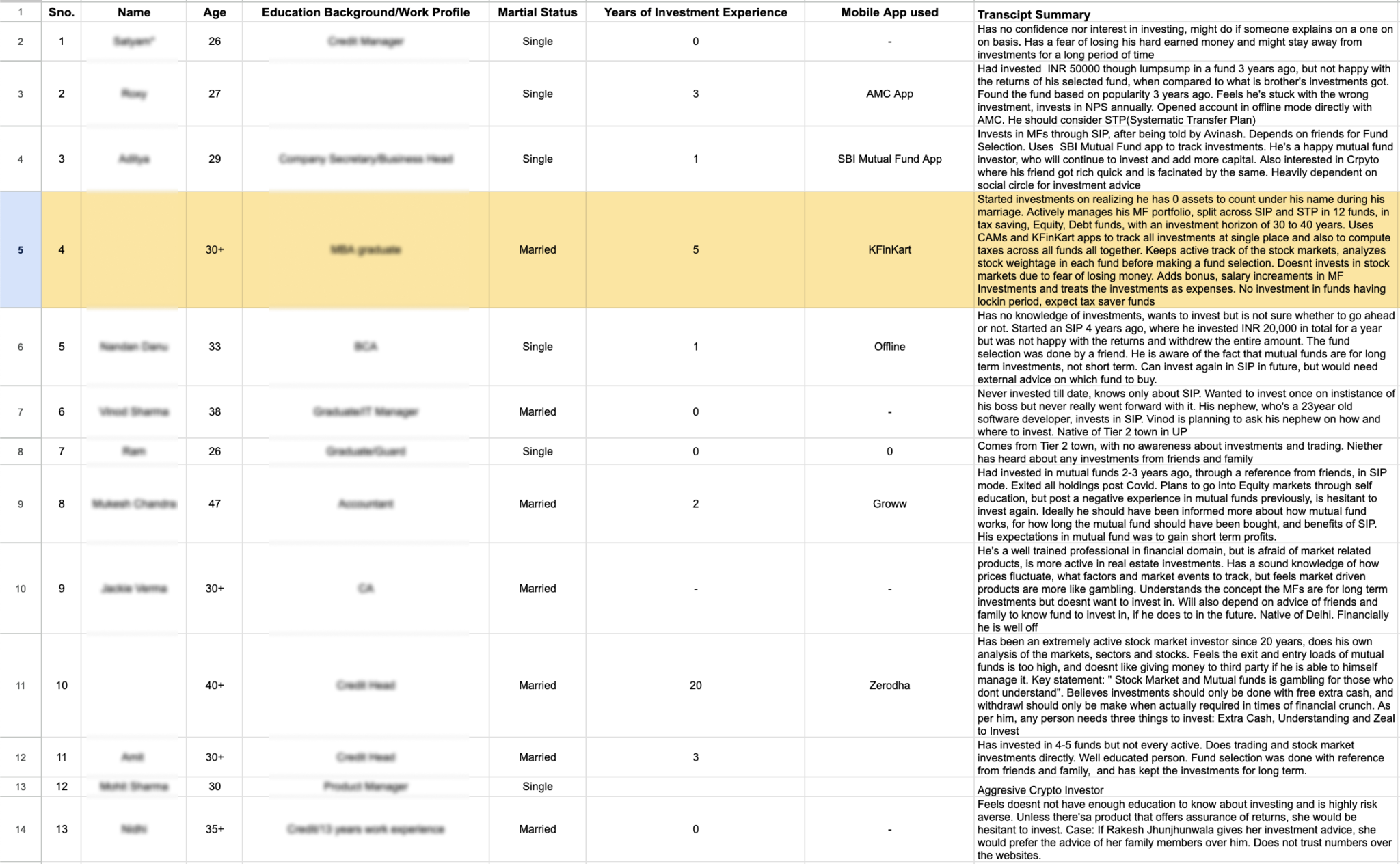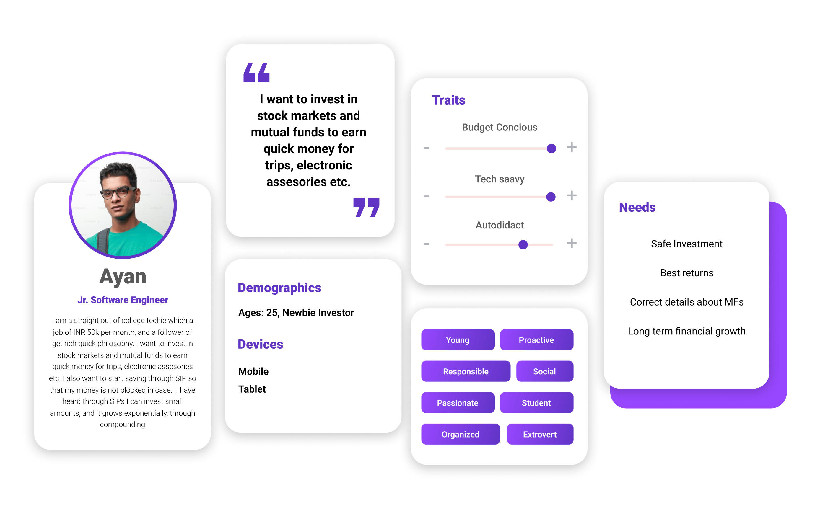 User interviews are a qualitative research approach where you engage in open-ended and structured conversations with users to gain a deep understanding of their experiences, needs, motivations, and behaviors. We gathered data on users' behaviour about their online mutual funds purchases to understand the challenges. Studied, what it takes to keep an investor have long-term investments holdings in mutual funds.